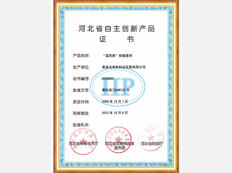 富思德牌微生物菌剂—河北省名牌产品证书
